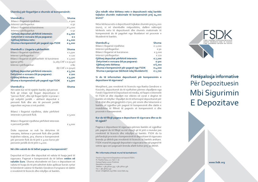 Të gjitha bankat anëtare të FSDK-së, janë pajisur me çertifikata të anëtarësisë dhe fletëpalosje informative me informacion të azhuruar mbi limitin e ri të sigurimit të depozitave prej €4,000. Bankat anëtare kanë për obligim të furnizojnë të gjitha degët dhe nëndegët me materialin e dorëzuar nga FSDK.